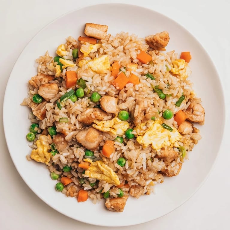 Save to Pinterest There's something about the rhythm of a wok that makes everything else fall away. I discovered chicken fried rice on a random Tuesday night when I had leftover rice, some chicken, and an inexplicable craving for something warm and alive. The sizzle when those ingredients hit the hot pan, the way the rice grains separate and glisten with soy sauce—it became my go-to when I needed comfort without fuss. Now it's the dish I make when friends drop by unannounced, or when my own kitchen feels chaotic and I need something simple to anchor the evening.