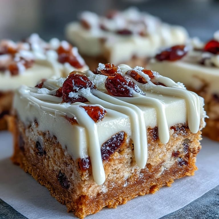 Save to Pinterest The first time I made cranberry bliss bars was purely by accident. I'd planned to make regular blondies but found a bag of cranberries staring at me from the pantry, begging to be used. What came out of the oven was something entirely different, a tangy sweet combination that had my family sneaking bites before I'd even finished frosting them. Now they're my most requested holiday treat, and I always double the recipe because one batch disappears faster than you'd believe possible.