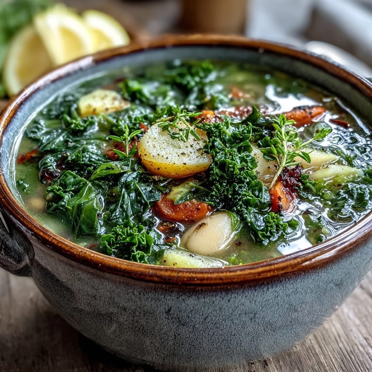 Save to Pinterest I used to think kale was just a garnish until a rainy Tuesday in Seattle changed my mind. My neighbor brought over a steaming bowl of this green soup when I was nursing a head cold. The steam rising from the pot smelled earthy and bright like a garden after a storm. It felt like a warm hug for my insides. This version is my attempt to capture that exact feeling of restorative comfort.