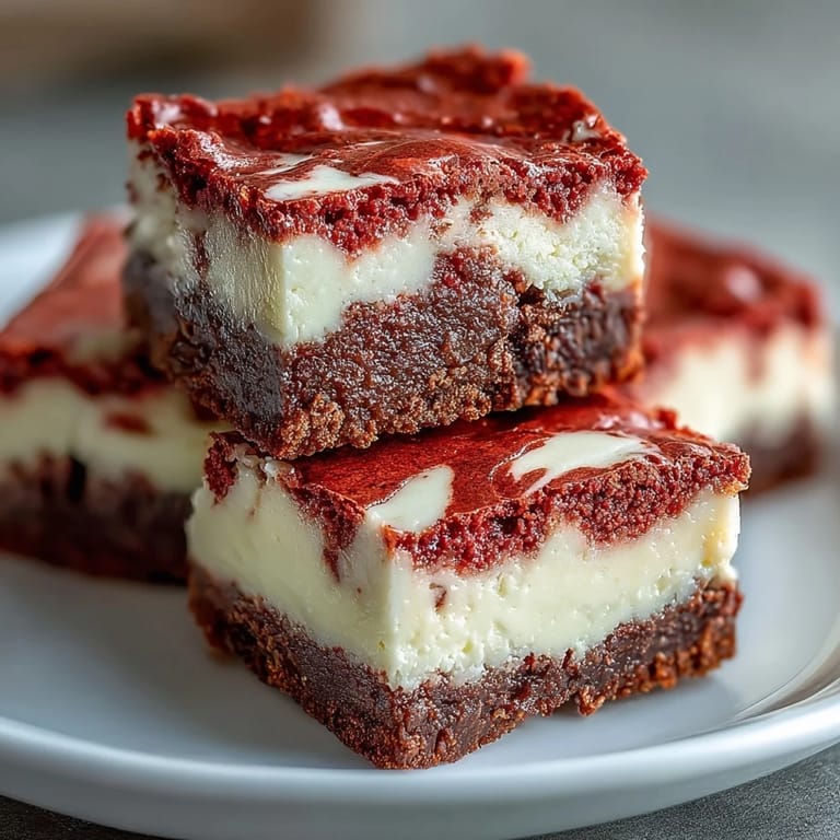 Save to Pinterest My neighbor brought over a batch of these last Valentine's Day, and I actually gasped when I cut into one. The way the crimson swirl ran through that creamy layer felt like opening a present. I begged for the recipe immediately, then spent the next weekend testing it three times until I nailed the perfect swirl pattern. Now they're my go-to whenever I need something that looks as impressive as it tastes. These brownies have ruined me for ordinary desserts.