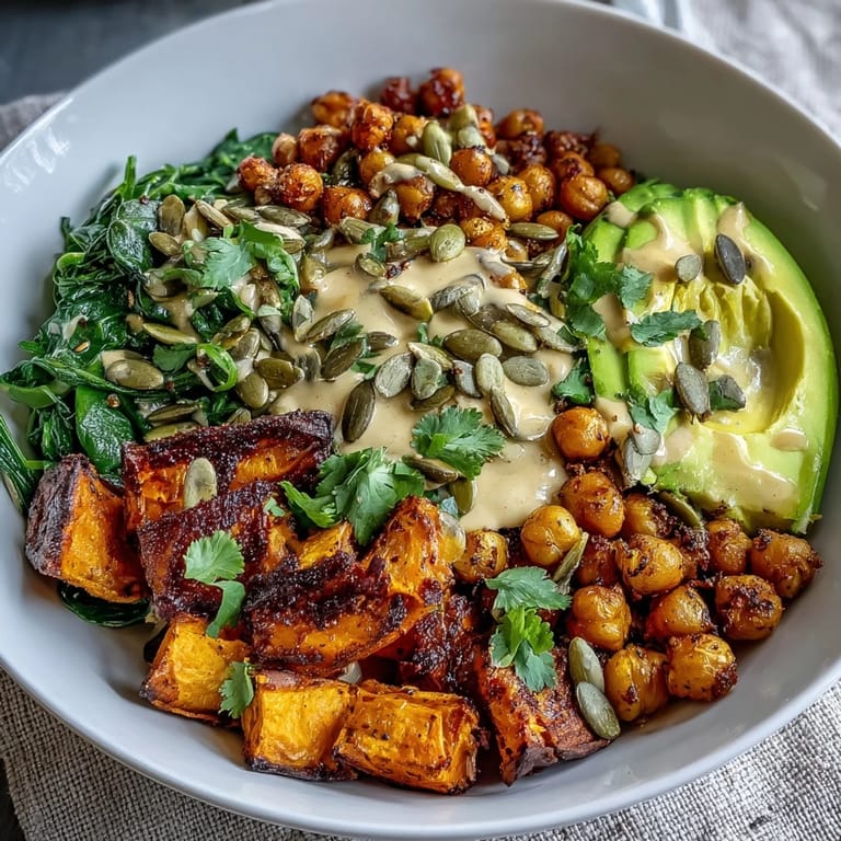 Save to Pinterest One Friday, I served this to a friend who'd been eating the same sad desk lunches for weeks, and the way her entire expression shifted when she tasted the combination of smoky dressing and sweet potato was worth all the chopping. She came back on Sunday and asked to learn how I made it, which meant I got to watch someone discover that vegetarian eating could be genuinely exciting. That's when I realized this bowl had become more than a recipe—it was a small moment of care.