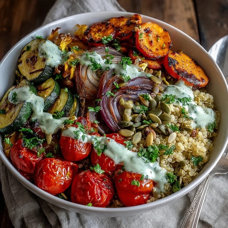 Save to Pinterest My neighbor knocked on my door one Thursday evening with a container of roasted vegetables and a question: did I know what to do with them? She'd overcommitted to a work potluck and had extras. That night, I threw together quinoa, warmed her vegetables, whisked up a tahini sauce from memory, and we ate straight from the bowl standing at my kitchen counter. It was so simple, so good, that I've made it my own way ever since, always thinking of that moment when someone's mistake became my favorite dinner.